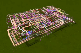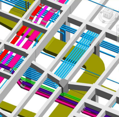 6、管线综合深化。运用BIM技术将建筑、结构、机电专业模型整合,对各楼层、机房等机电管线进行碰撞检查,从而优化排布,避免管线与结构建筑之间的冲突。